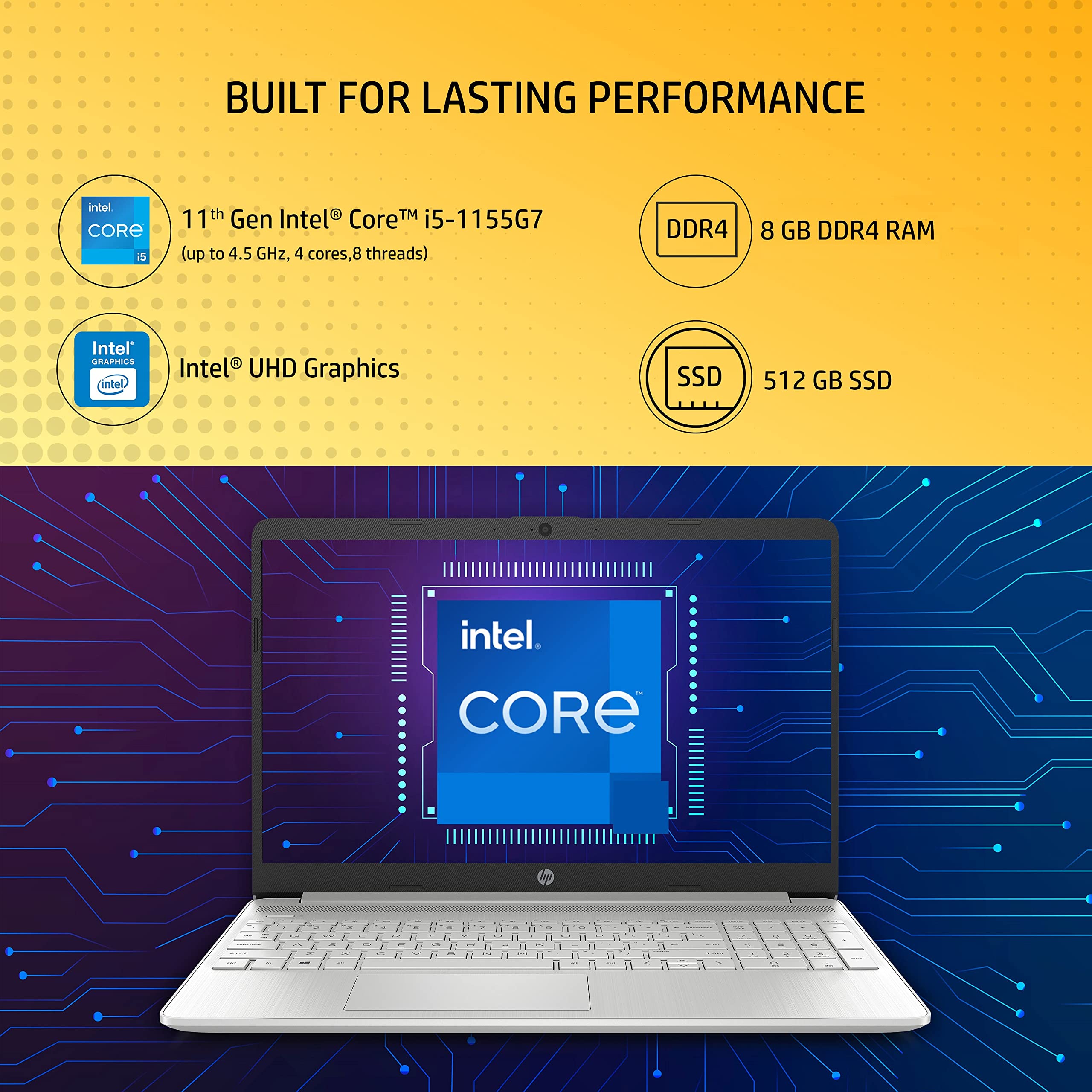 Processor: Intel Core i5-1155G7 (up to 4.5 GHz with Intel Turbo Boost Technology(2g), 8 MB L3 cache, 4 cores, 8 threads)|Memory: 8 GB DDR4-3200 MHz RAM (1 x 8 GB) Upto 16 GB DDR4-3200 MHz RAM (2 x 8 GB)|Storage: 512 GB PCIe NVMe M.2 SSD